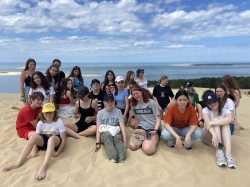 Donnerstag dann das Highlight: ein Tag am Meer! Mit dem Zug fuhren wir nach Arcachon und unternahmen dort eine tolle Bootstour. Im Anschluss besuchten wir das nicht weit entfernte Naturschutzgebiet der Dune du Pilat. Die Verwüstungen der Brände des letzten Jahres waren noch sichtbar, und dennoch waren alle von der größten Wanderdüne Europas sehr beeindruckt und haben die tolle Aussicht auf das schöne blaue Meer genossen.