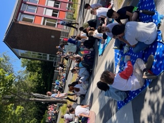 Die Sperrung der Fritz-Jakobi Straße für den Durchgangsverkehr auf Höhe des Schulcampus hat eine erste schulübergreifende Aktion möglich gemacht: Am 31. Mai haben das Gymnasium Hennef gemeinsam mit der GGS Gartenstraße und der Gesamtschule Hennef West zum fairen Frühstück eingeladen. (weitere Infos unter https://www.fairtrade-kampagnen.de/startseite/aktionen/das-jahr-mit-fairtrade/fair-in-den-tag).Insbesondere die hoch engagierten Schüler und Schülerinnen der Umweltgruppe des SGH haben im Vorfeld viel auf die Beine gestellt: Einerseits haben sie sich ein paar unterhaltsame Spiele wie Sackhüpfen und Dosenwerfen ausgedacht. Andererseits haben sie sich auch um weitere Sachspenden bei verschiedenen in Hennef ansässigen Unternehmen angefragt. Stolz können sie sein auf einer mehr als großzügige Brötchenspende der Vollkornbäckerei DLS sowie auf Spenden des Supermarkts REWE (Petz)