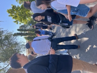 Bei schönstem Wetter machten es sich die Schüler und Schülerinnen entweder auf Picknickdecken oder den Bierbänken am Straßenrand bequem. Die Big Band des Gymnasiums sorgte für musikalische Untermalung und auch Bürgermeister Mario Dahm und Herr Herkt von der Stadt machten sich persönlich ein Bild von der durch und durch gelungen Aktion. Einige Schülerinnen und Schüler zeigten reges Interesse an einem Gespräch mit dem Bürgermeister, der offen und geduldig mit den Schülerinnen und Schülern sprach.
