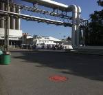 Um einen Überblick auf den gesamten Chemiepark zu erhalten, fuhren wir in einem älteren Hochhaus mit einem Fahrstuhl in das oberste Stockwerk. Hier konnte man im Rundgang in alle vier Himmelsrichtungen von oben betrachten, wie gewaltig dieser Park ist. Fotografieren war allerdings nicht erlaubt.