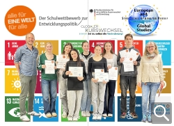 In diesem Jahr haben gleich drei Gruppen des European and Global Studies–Kurses mit ihren Wettbewerbsbeiträgen beim Wettbewerb „Eine Welt für alle“, der sich mit der Erreichung der 17 Nachhaltigkeitsziele auseinandersetzt und in diesem Jahr unter dem Motto „Globaler Kurswechsel: Sei du selbst die Veränderung“ stand, den 4. Platz auf Bundesebene erreicht. Neben den Urkunden erhalten die Gruppen jeweils ein Preisgeld von 100 €.