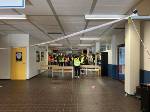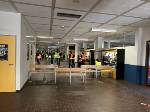So mussten sich die SchülerInnen ab der 2 Stunde unten im Erdgeschoss versammeln; die Stufen 5-8 gingen vorab schon mal ins PZ während die Stufen 9-EF im Foyer warteten und sich mit Rodeo auf der vor dem Eingang aufgebautem "Bullriding - Maschine" die Wartezeit vertreiben konnten, bis sie ins PZ konnten und dort die unteren Stufen ablösten.