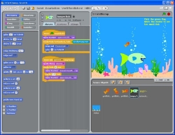 Im Differenzierungsbereich (Jahrgangsstufe 8/9) ist das Scratch-Projekt bei den Schülerinnen und Schülern sehr beliebt. Scratch ist eine erziehungsorientierte visuelle Programmiersprache, deren Ziel es ist, Neueinsteiger mit den Grundkonzepten der Computerprogrammierung vertraut zu machen. Programme werden durch das Zusammenstecken von Bausteinen ähnlich wie Legoteile erstellt. Da es auf einer nahezu rein grafisch gehaltenen Oberfläche basiert, werden potentielle Frustfaktoren, wie viel Tipparbeit, komplizierte Sprachsyntax und diesbezügliche Fehler ausgeschlossen. Anfänger erzielen sehr schnell Erfolgserlebnisse, die motivieren, sich vertieft mit der Materie auseinanderzusetzen. Scratch ermöglicht das Integrieren von eigenen Bildern und Tönen. Bei Scratch-Projekten ist somit nicht nur das logische Denken gefordert, sondern auch Gestaltung und Ästhetik.