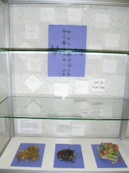 Das Foto oben rechts zeigt die Ausstellung "Aschermittwoch, Beginn der Fastenzeit" mit Beiträgen der Klassen 7d, 7f, 9a und 9c in der Vitrine im ersten Obergeschoss.